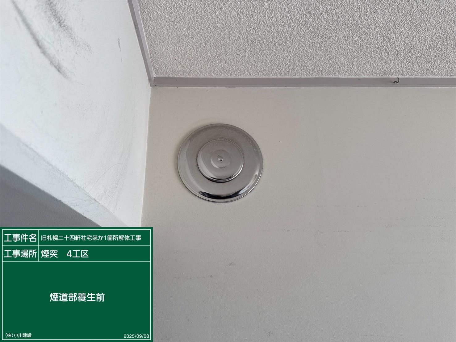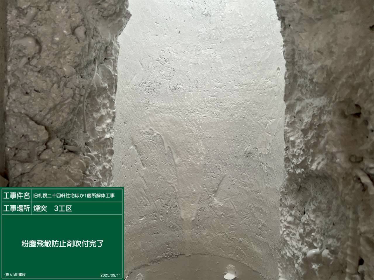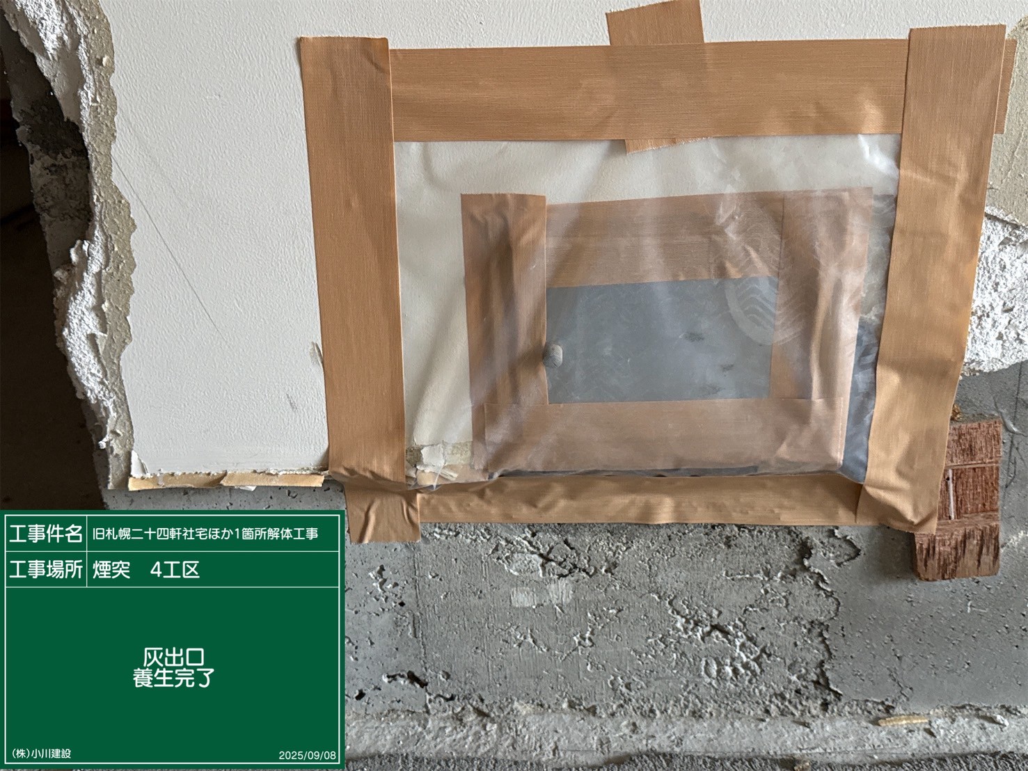 黒板の名前:煙道部養生完了