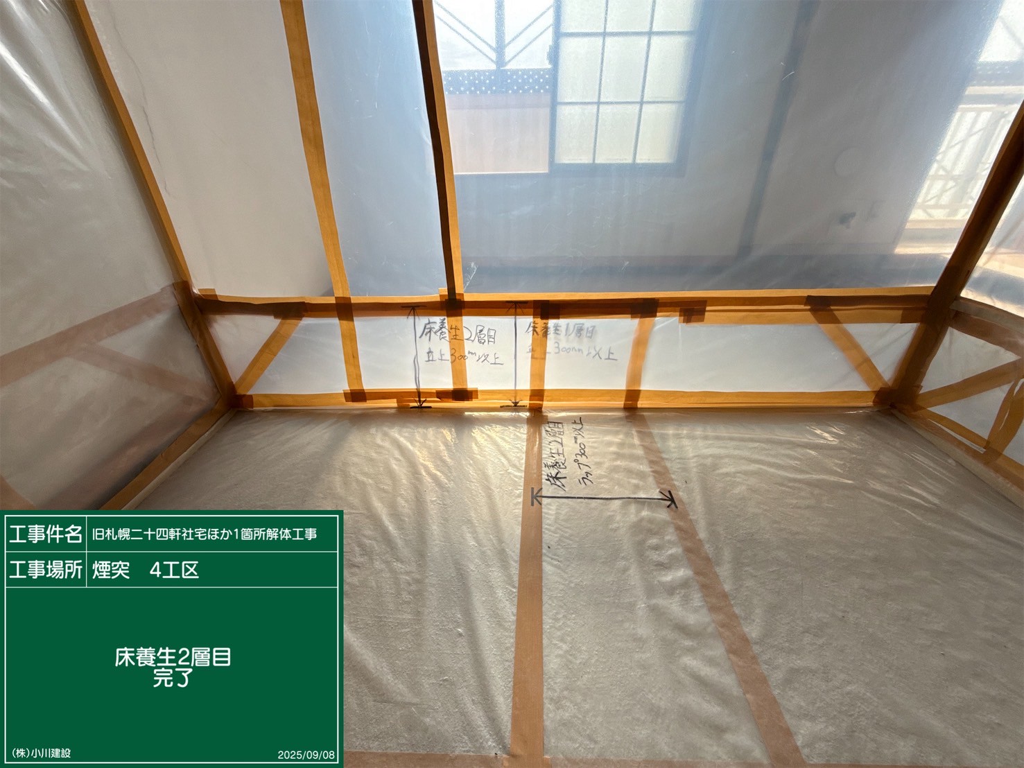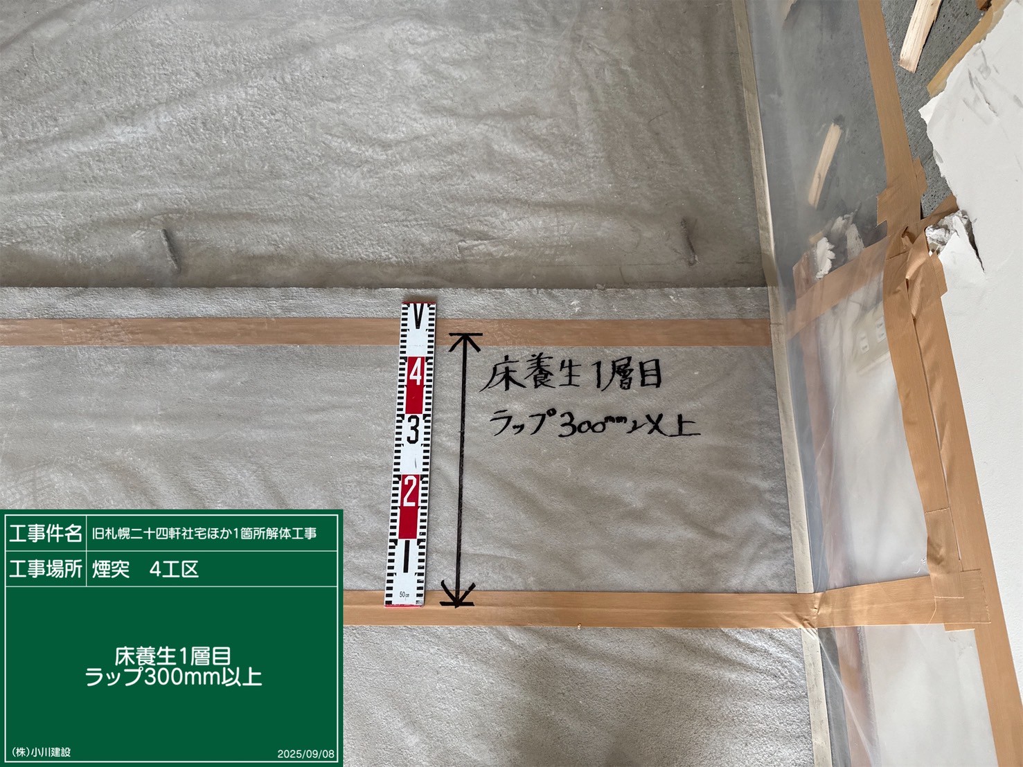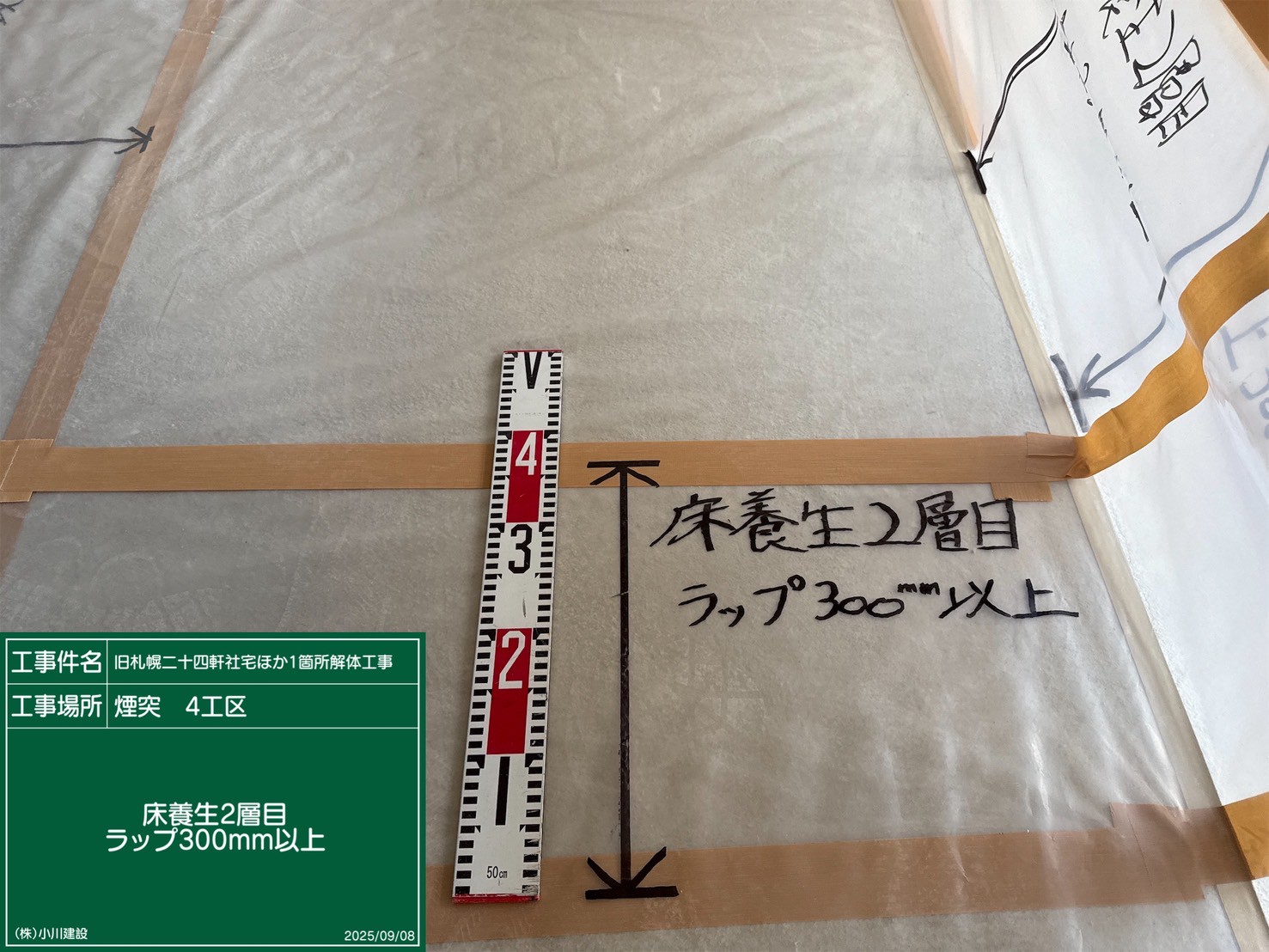 黒板の名前:床養生二層目_ラップ300mm以上