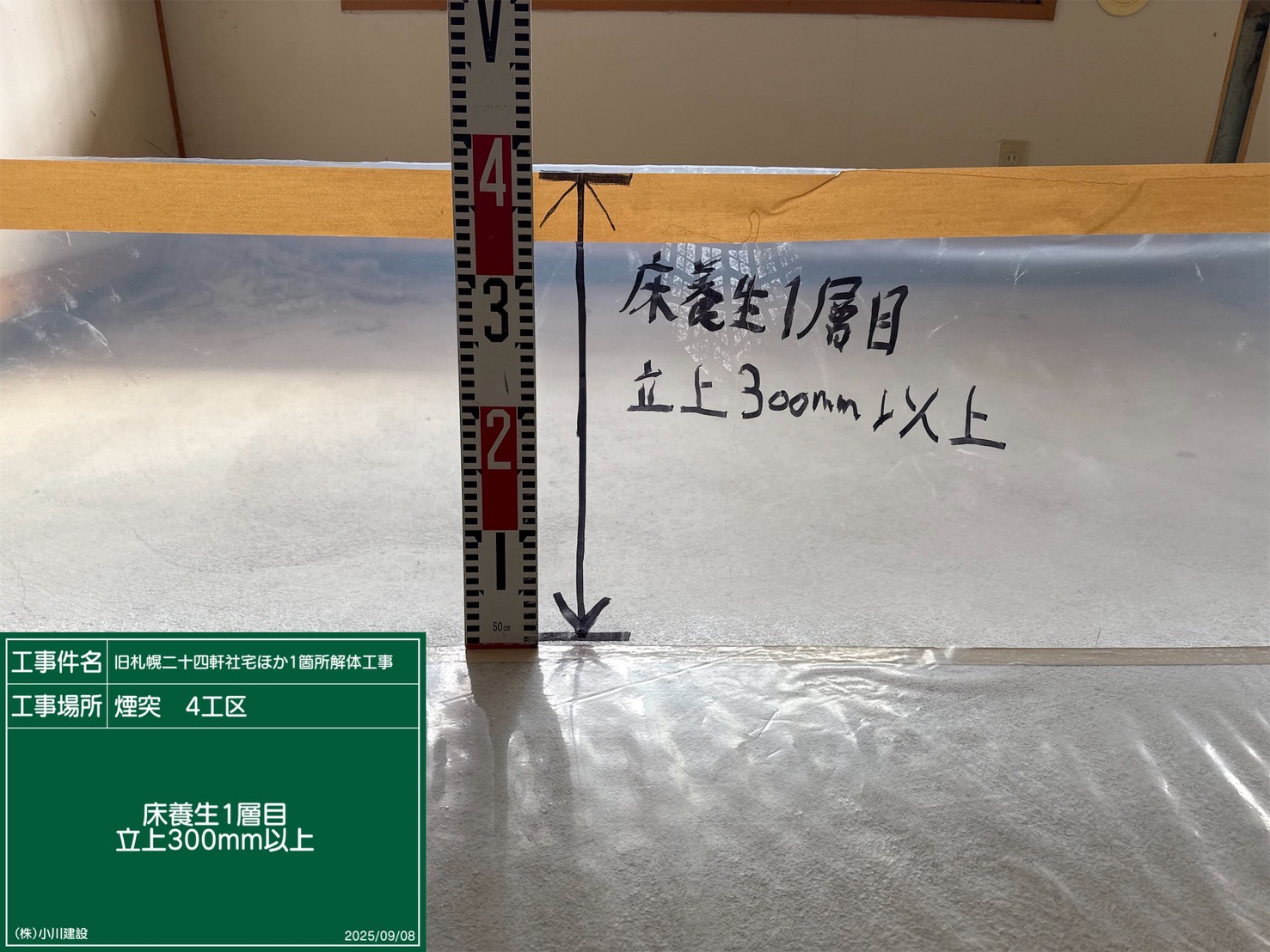 黒板の名前:床養生一層目_立ち上がり300mm以上