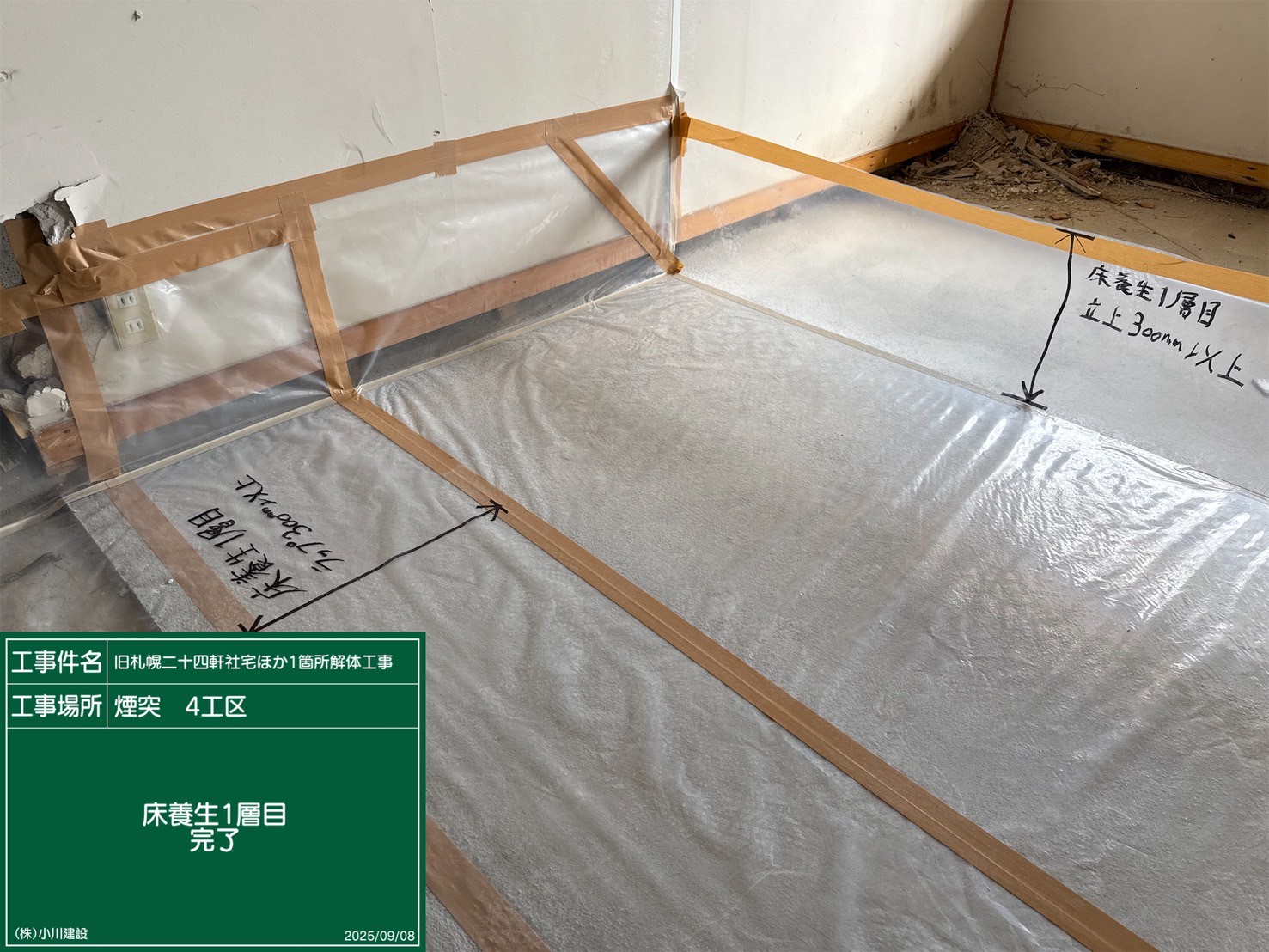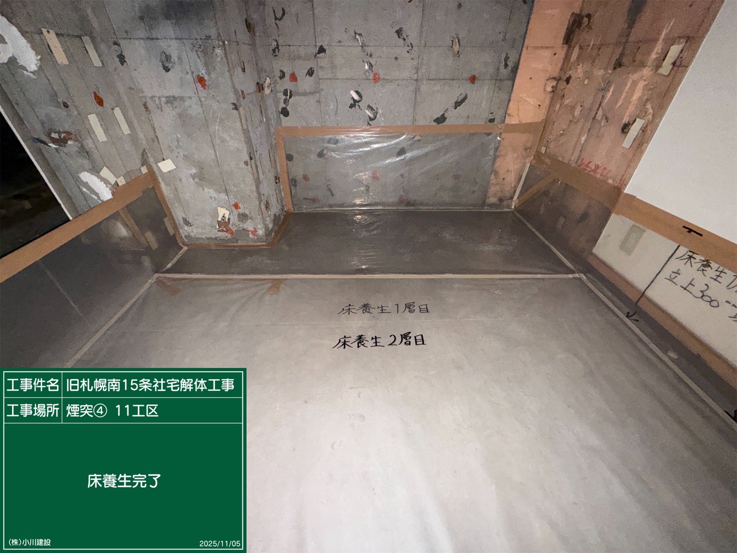 黒板の名前:床養生完了