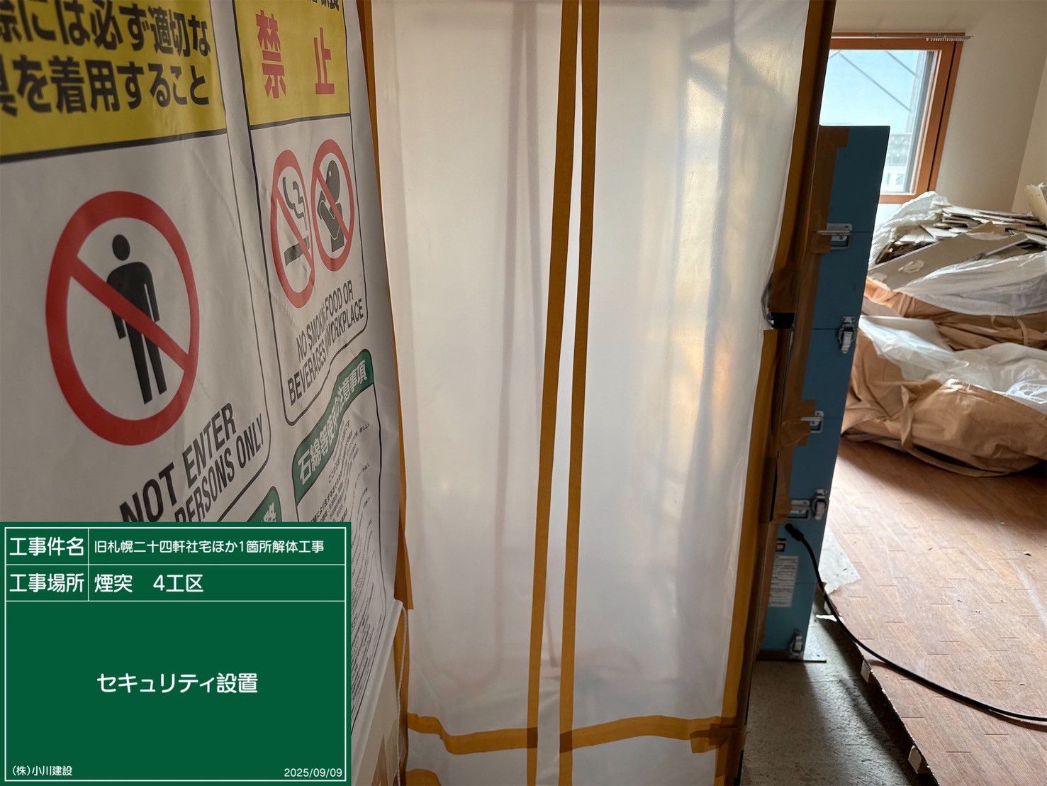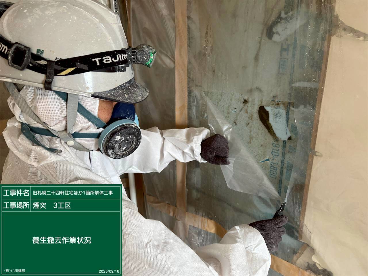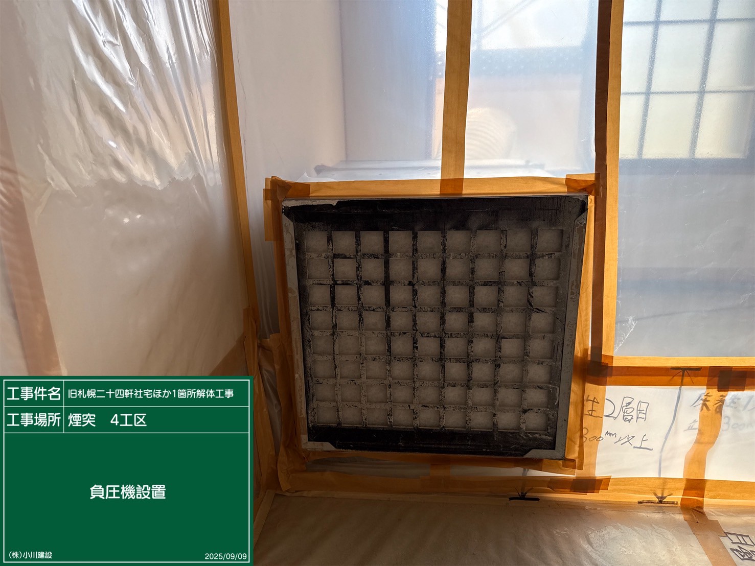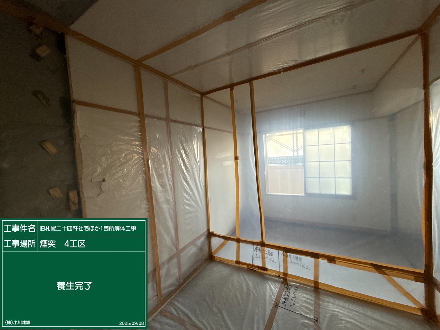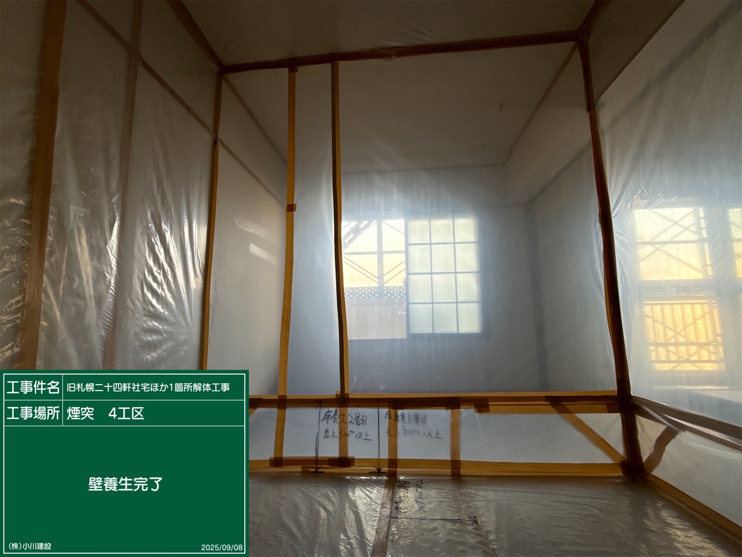 黒板の名前:養生撤去作業状況