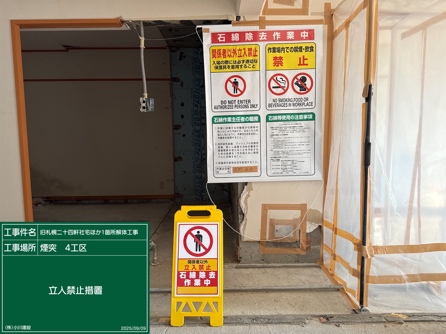 黒板の名前:アスベスト除去作業前