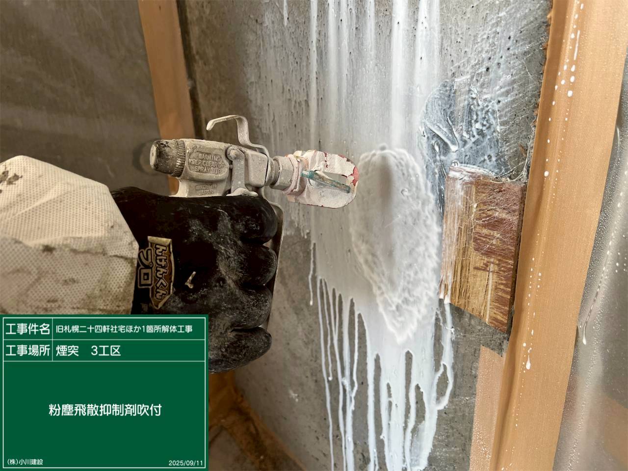 黒板の名前:粉じん飛散抑制剤吹付