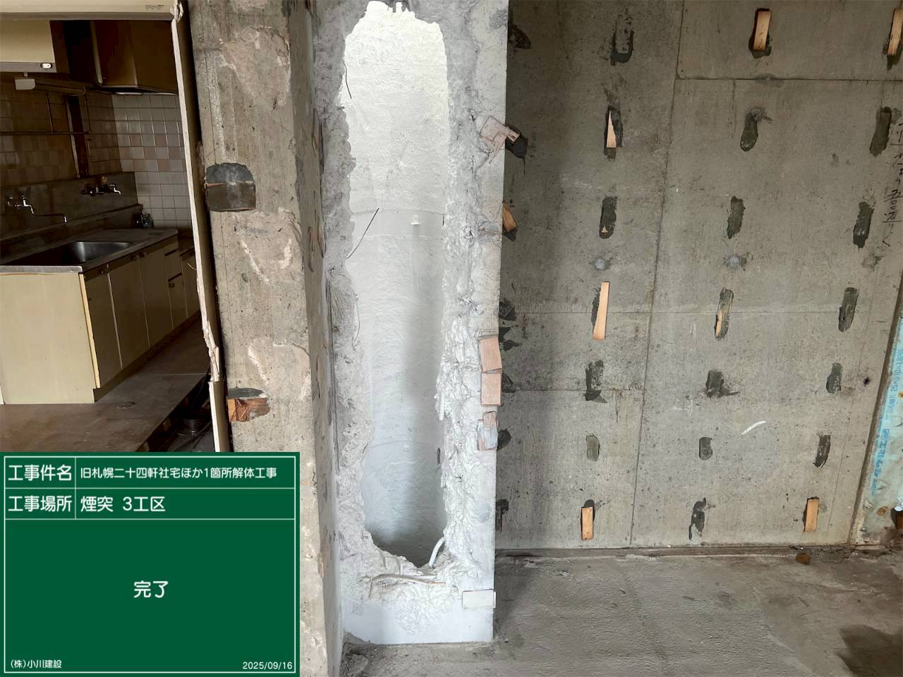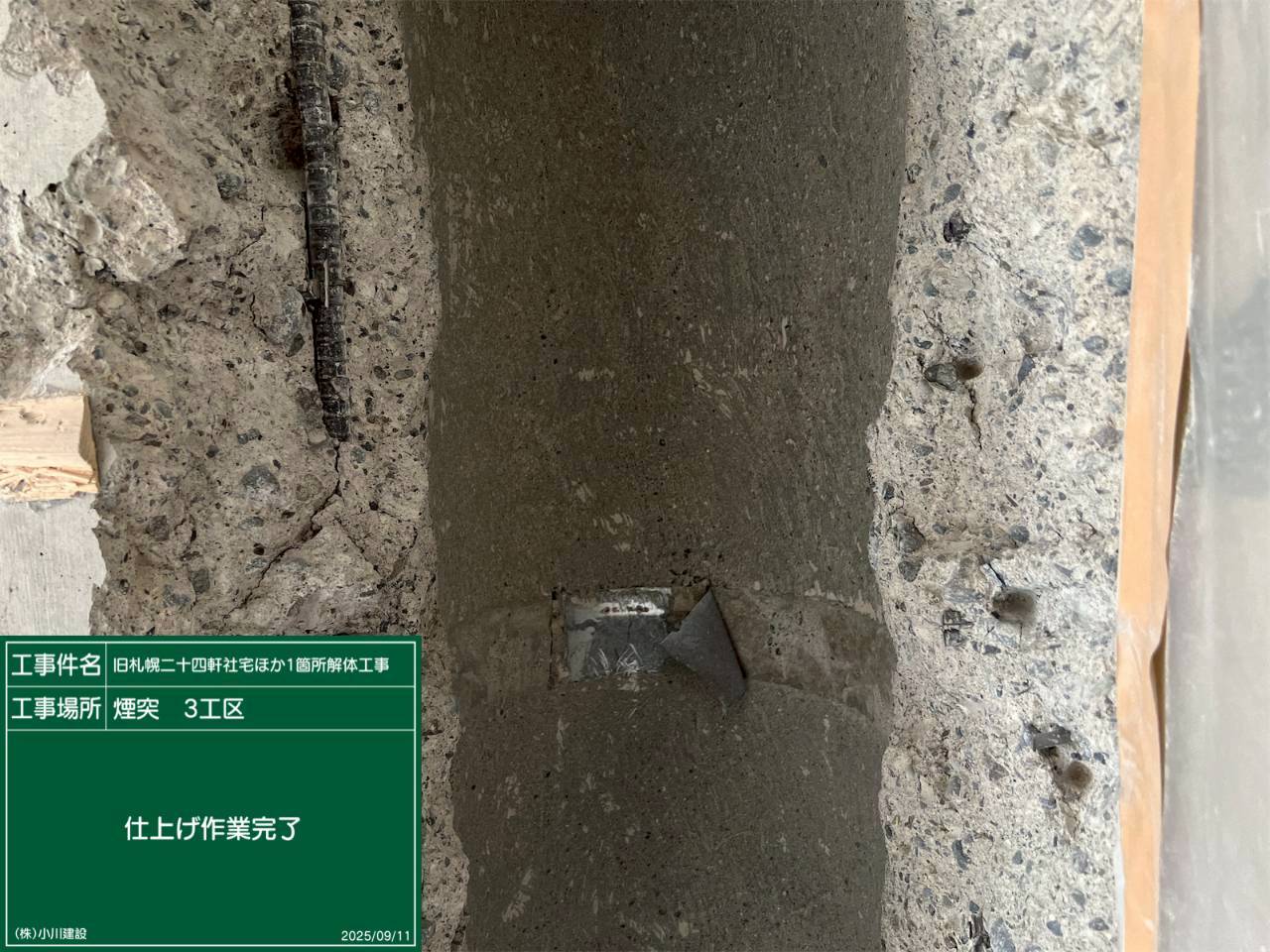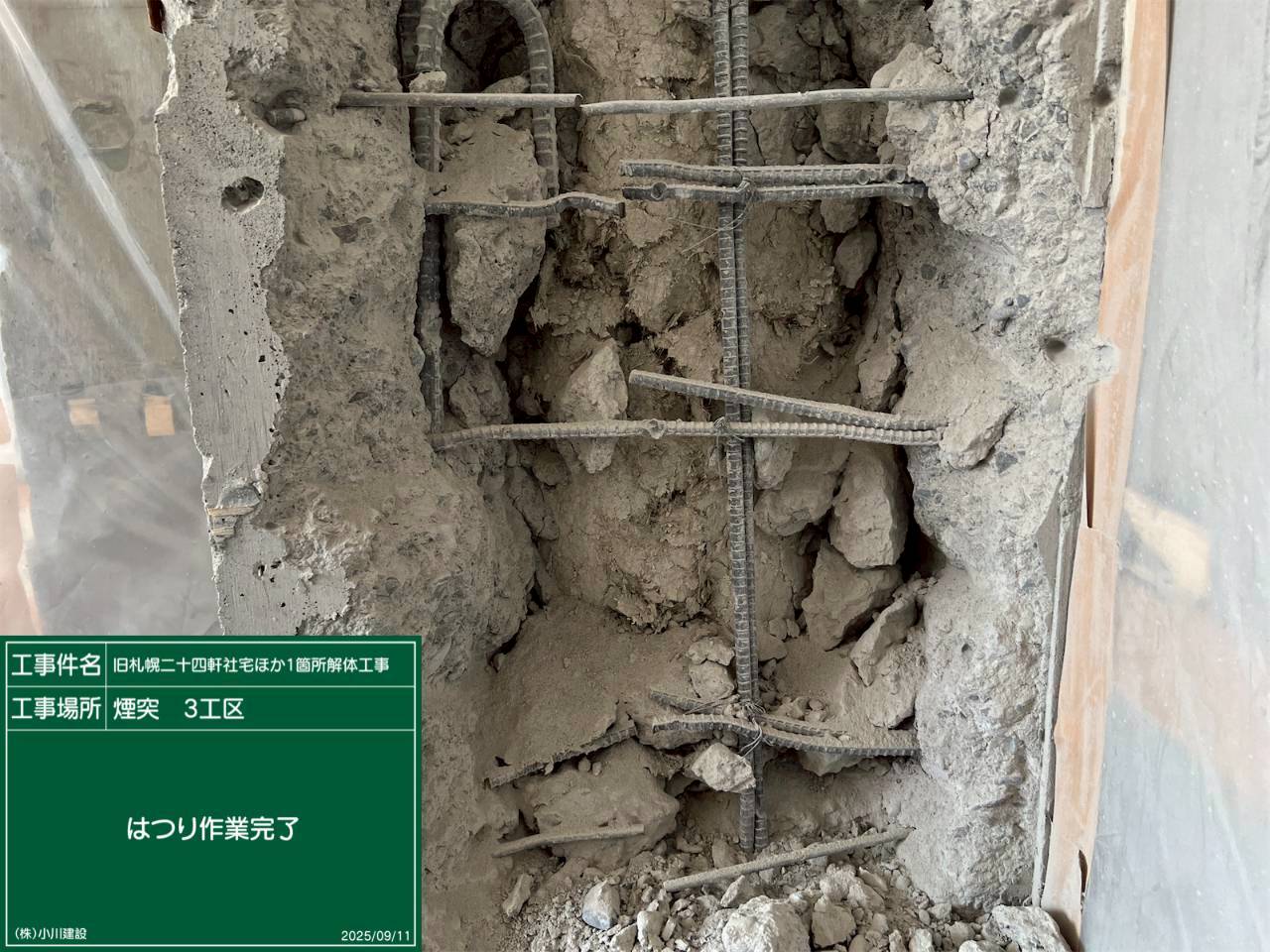 黒板の名前:はつり作業完了