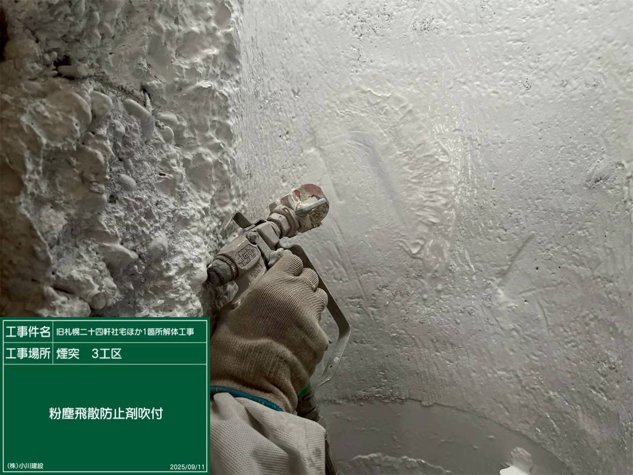 黒板の名前:粉じん飛散防止剤吹付